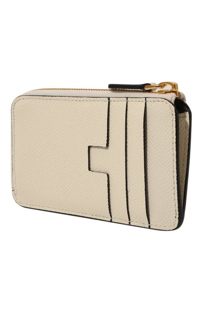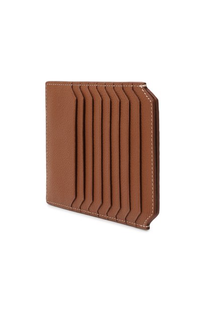 Картхолдер из телячьей кожи с тиснением под крокодила дополнили карманом для монет, который застегивается молнией. На задней панели разместили три слота для карт. Центральный карман для чеков отделали гладкой овечьей кожей.