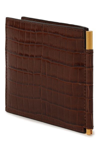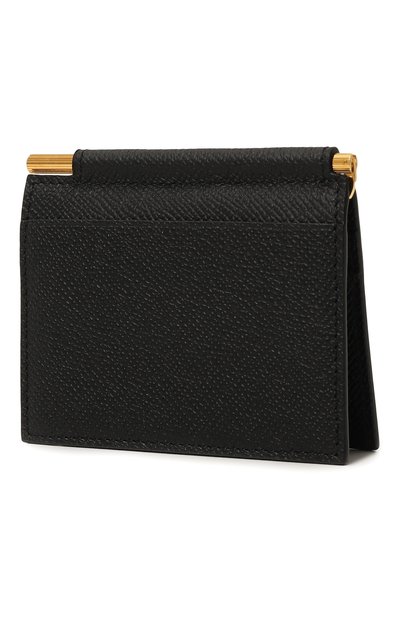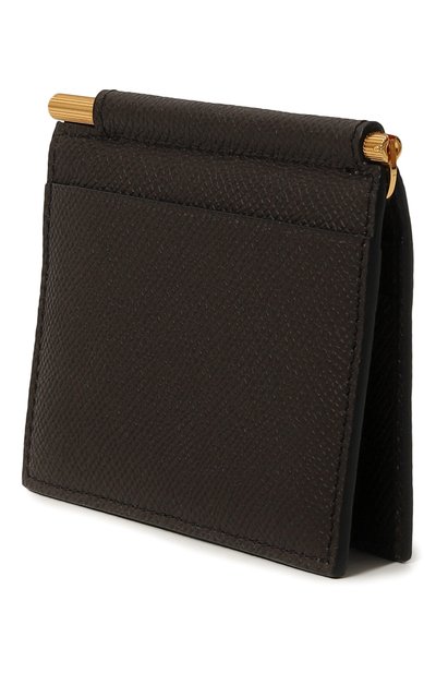 Лаконичный футляр выполнен из фактурной матовой кожи. Для банковских карт внутри предусмотрены восемь слотов. Компактный аксессуар с металлическим позолоченным зажимом для купюр украшен миниатюрной монограммой TF.
