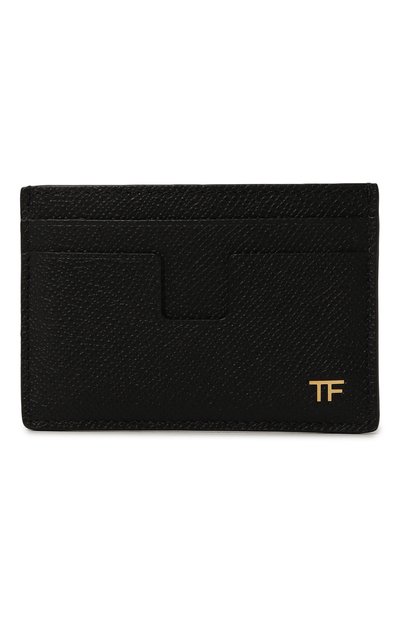 Черный картхолдер поместится во внутреннем кармане пиджака и не займет много места в небольшой сумке. Аксессуар с четырьмя слотами для кредитных карт и центральным отделением для монет сшили из прочной зернистой кожи с глянцевым блеском. Переднюю панель декорировали золотистой монограммой TF.