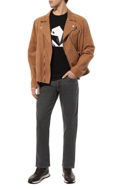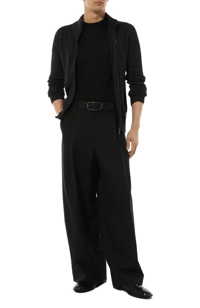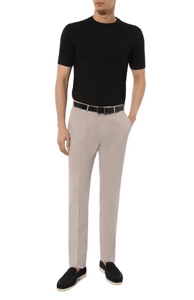 Лаконичный черный джемпер сделали похожим на футболку с помощью круглой горловины и коротких рукавов. Приятную на ощупь модель связали из мягкой пряжи на основе тонкого шелка с добавлением тщательно очищенного хлопка, обеспечивающего оптимальный микроклимат. Наши стилисты предлагают сыграть на контра сте цветов и создать повседневный образ с брюками и рубашкой, завершив его кедами.