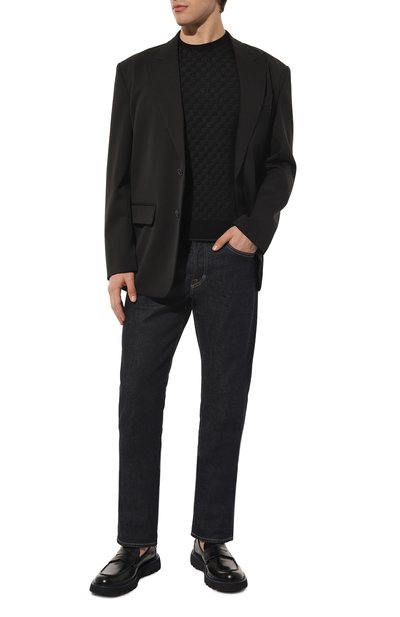 Лаконичный черный джемпер сделали похожим на футболку с помощью круглой горловины и коротких рукавов. Приятную на ощупь модель связали из мягкой пряжи на основе тонкого шелка с добавлением тщательно очищенного хлопка, обеспечивающего оптимальный микроклимат. Наши стилисты пред лагают сыграть на контрасте цветов и создать повседневный образ с брюками и рубашкой, завершив его кедами.