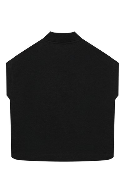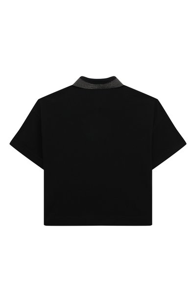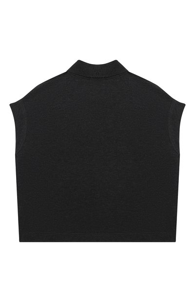 Темно-серое поло с цельнокроенными рукавами сделали наряднее с помощью широких горизонтальных полос, вышитых миниатюрными пайетками в тон. Для создания модели выбрали мягкое хлопковое пике, хорошо пропускающее воздух. Изделие исключительно приятно ощущается на коже и не сковывает движения.