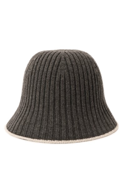 Панаму выполнили из фактурного трикотажа на основе шерсти, кашемира и шелка. Края аксессуара подчеркнули узким кантом, вдоль которого закрепили в два ряда фирменную цепочку мониль.