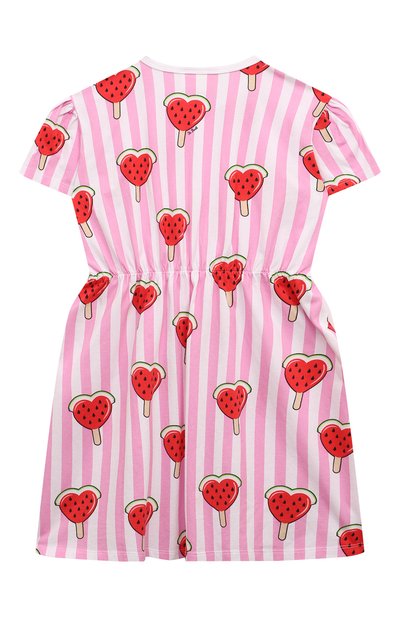 Платье Leila с рукавами-крылышками выполнили из тонкого хлопкового джерси с брендированным принтом в виде конфет. Модель с расклешенным подолом дополнили эластичной вставкой на талии.