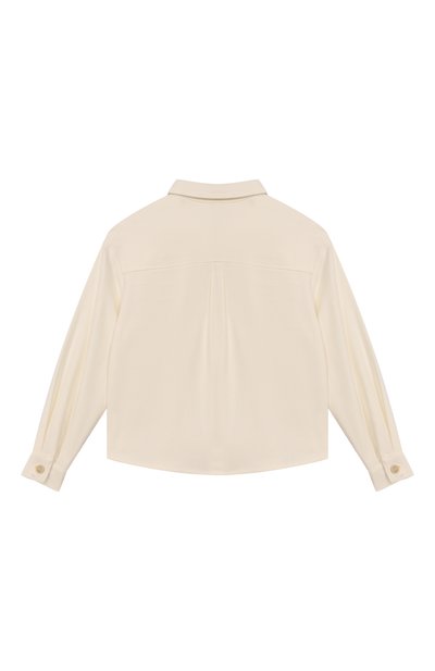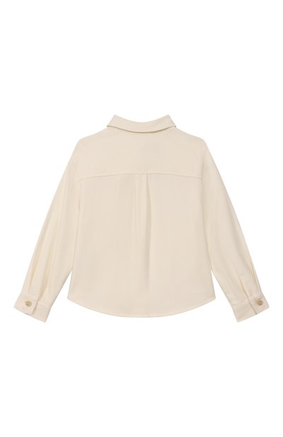 Рубашку Brigitte с бантовой складкой сзади выполнили из хлопкового сирсакера в тонкую полоску. Модель с брендированными пуговицами украсили вышитым ягодным паттерном.