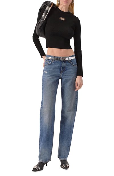 Синие джинсы с выбеленным эффектом органично впишутся в образ разной степе ни сложности. За комфорт в течение дня отвечают выверенный крой и мягкий плотный хлопок, который не потеряет опрятный вид со временем. Брюки украсили сзади знаковыми для бренда крестами, вышитыми светлыми нитями.