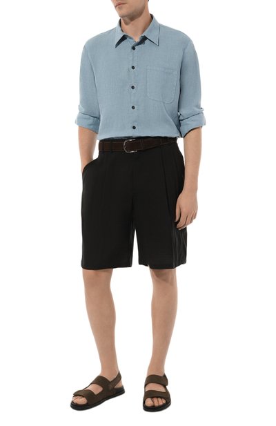 Для пошива рубашки прямого кроя использовали лен. Модель с широкой кокеткой, закругленным подолом и воротником кент украсили спереди вышитой эмблемой марки.