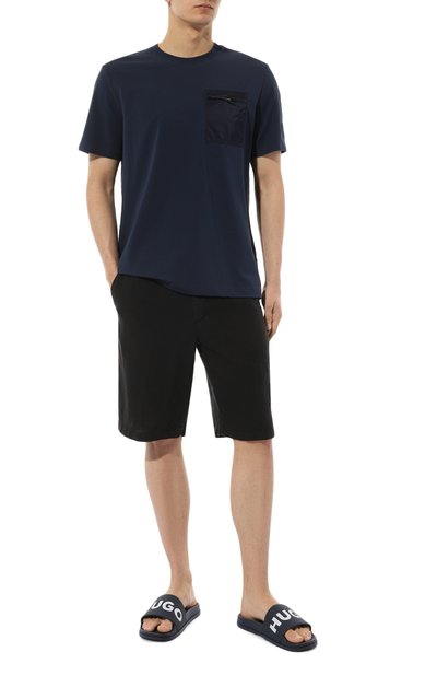 О принадлежности этих темно-синих резиновых шлепанцев марке сообщает белый крупный принт на широких перемычках. Эту деталь продублировали с внутренней стороны мягким текстилем, поэтому обувь комфортно облегает ноги. Рельефная анатомическая стелька создает противоскользящий эффект и равномерно распределяет нагрузку на свод стопы.
