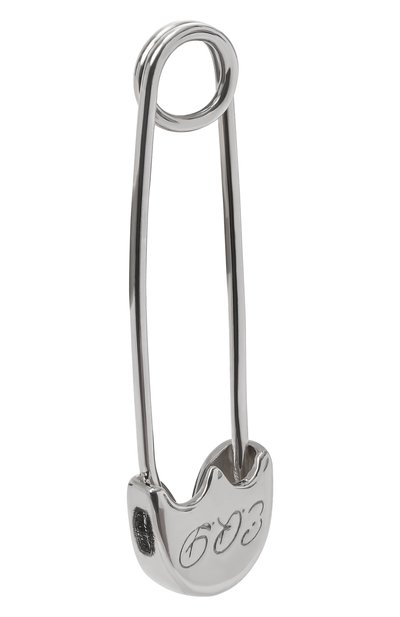 У небольших серег-колец принадлежность марке обозначили узнаваемым числовым мотивом. Дополнительный визуальный объем тисненой надписи придает глянцевый блеск материала. Украшение изготовили из латуни с золотым гальваническим покрытием.