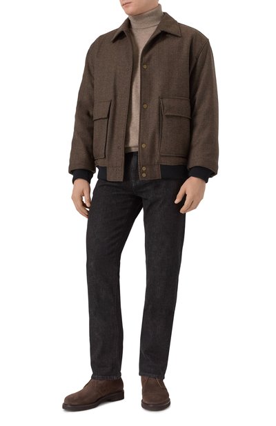 Ботинки с миндалевидным мысом вручную изготовили из фактурной замши, которую бережно выделали для баланса мягкости, прочности и пластичности. Верх соединили с каучуковой подошвой по методу Blake, поэтому пара получилась легкой и гибкой. Универсальный темно-коричневый цвет подружит пару с комплектами самой разной палитры.
