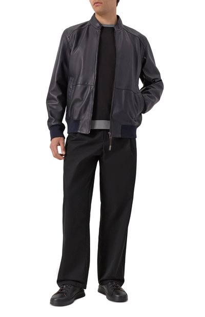 Для пошива черных кедов на широкой подошве мастера бренда, основанного Джузеппе Баракко, использовали крупнозернистую кожу, которая за счет своей фактуры не боится случайных потертостей. Выделанный до пластичности материал наделен свойством адаптироваться к форме стопы, поэтому обувь удобно садится по ноге. Задник дополнили бархатистой накладкой с золотистой эмблемой марки.