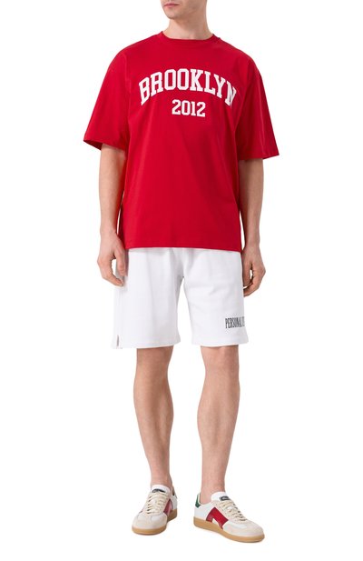 Неоново-оранжевая футболка добавит повседневному образу яркие краски. Для пошива модели мастера марки, основанной Дирком Биккембергсом, использовали мягкое хлопковое джерси с включением стрейчевых волокон, поэтому она комфортно садится по фигуре. Спереди изделие декорировали крупным белым логотипом на фоне абстрактного разноцветного принта.