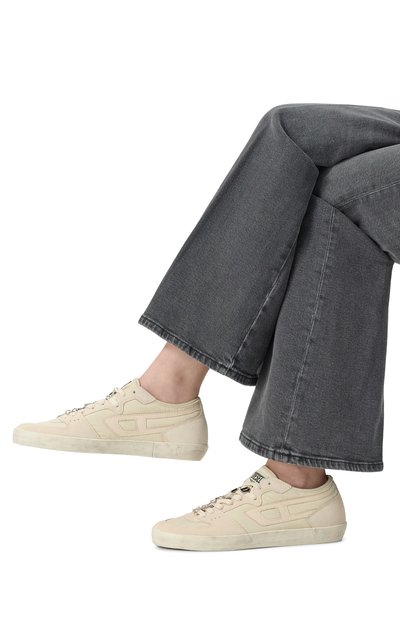 Низкие кремовые кеды Inside-Out мастера марки, основанной Мартином Маржелой, выполнили в технике деконструкции. Модель словно собрали из деталей нескольких пар, оставив края необработанными. Для изготовления обуви с люверсами сбоку использовали прочную хлопковую парусину. За комфорт при ходьбе отвечает гибкая нескользящая подошва.