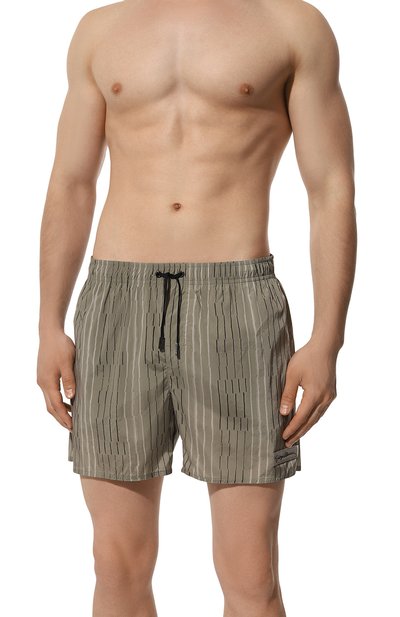 Плавки-шорты оттенка хаки выполнили из особенно мягкого тонкого нейлона с шелковистым блеском. Прямую модель с накладным и прорезными карманами не боится воздействия соленой и хлорированной воды и быстро сохнет. Широкий эластичный пояс с регулируемой кулиской отвечает за посадку на талии.