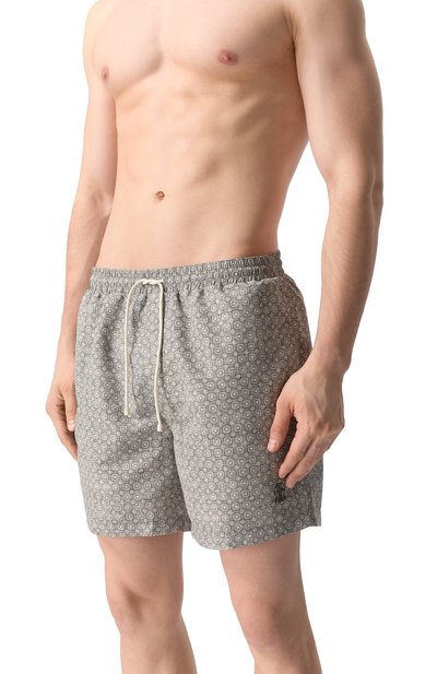 Для создания свободных плавок-шортов использовали гладкий быстросохнущий нейлон. Модель с тремя карманами и эластичным поясом-кулиской украсили графичным принтом с 3D-эффектом.