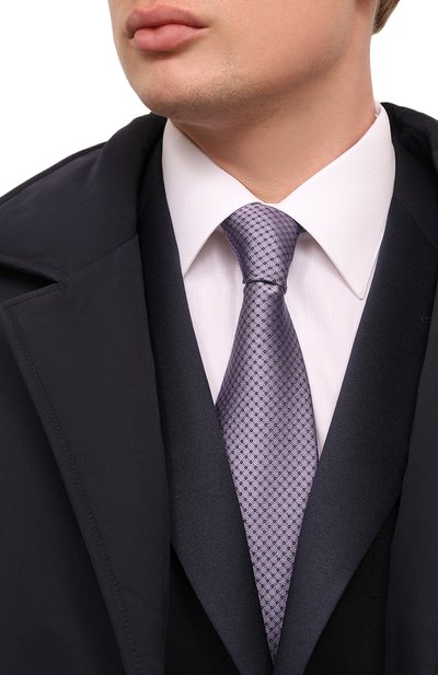 Темно-зеленый галстук декорировали жаккардовым микроузором, визуальный объем которому придает благородный блеск плотного шелка. Материал долго выглядит как новый, не мнется и быстро восстанавливает форму после узла. Аксессуар, скрепленный эластичным ручным швом, сохраняет идеальную вертикаль и не перекручивается.