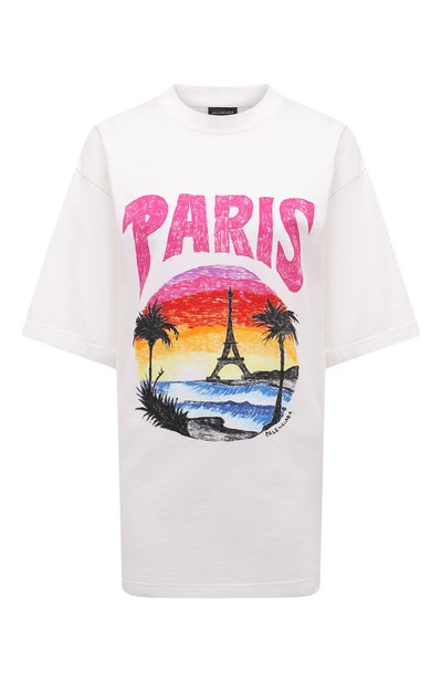 Красочный мотив Paris tropical и розовый логотип на этой футболке словно нарисовали от руки цветными фломастерами. Для пошива модели силуэта oversize использовали тонкое джерси из органического хлопка. Изделие легко станет частью яркого летнего образа с брюками оттенка фуксии и кроссовками.