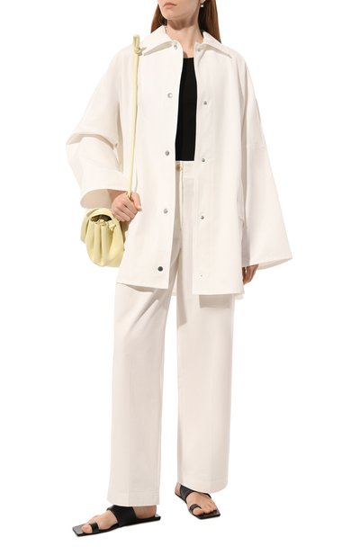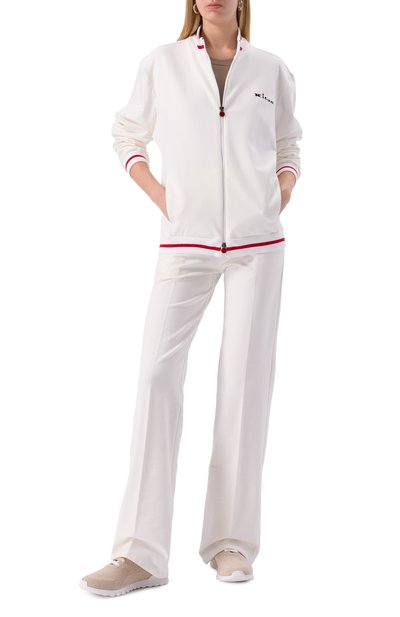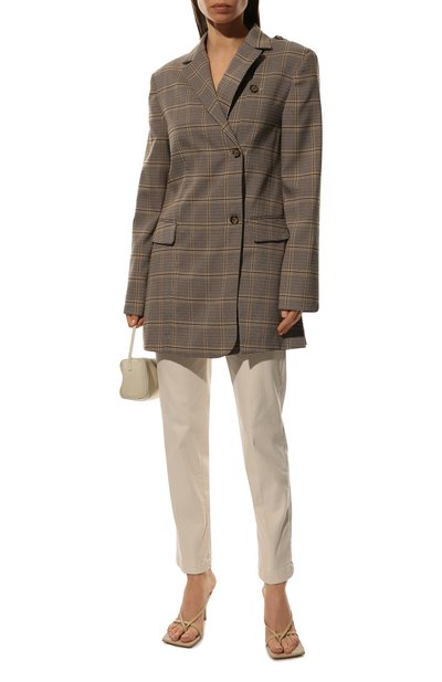 Прямые брюки Regina изготовили из фактурного льна, смешанного с хлопком. Над стрелками заложили складки, а по бокам и сзади расположили четыре кармана. Модель с роговыми пуговицами и эластичным поясом с шелковой отделкой сочетается как с классическими туфлями, так и с мокасинами.