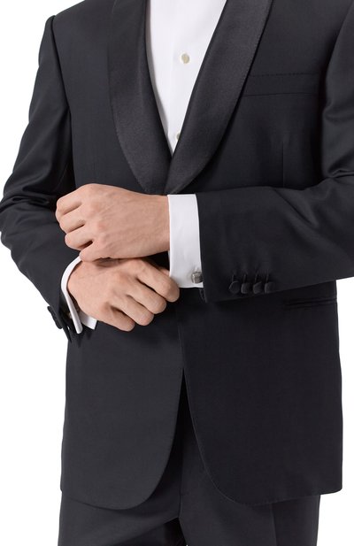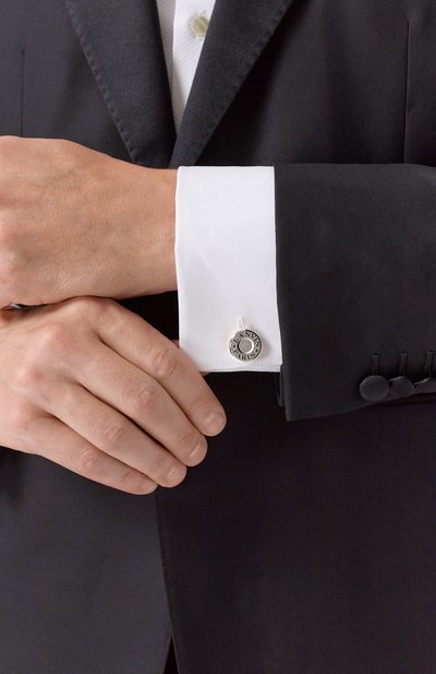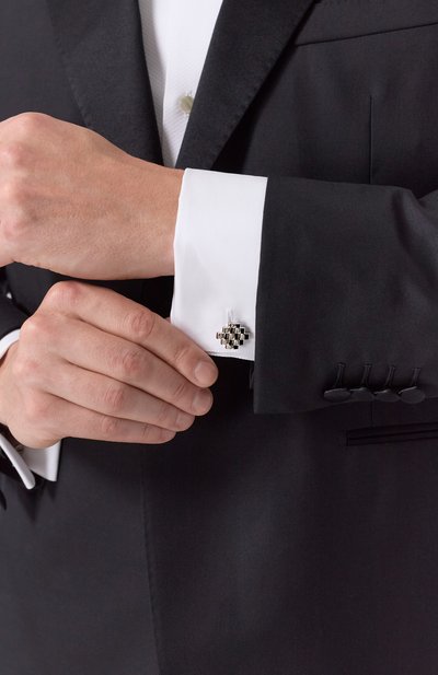 Асимметричные запонки с застежкой Bullet Back изготовили из стали с гальваническим покрытием палладием. Выгравированный мотив Star Weave, вдохновленный армянской архитектурой, подчеркнули эмалью.