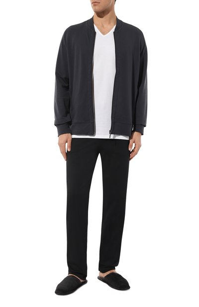 Для пошива лаконичной белоснежной футболки с V-образным вырезом использовали приятное телу джерси из отборного длинноволокнистого хлопка пима. Модель из такого гладкого тонкого материала с добавлением эластана не сковывает движения и отлично пропускает воздух, поддерживая комфортный микроклимат во время домашнего отдыха.