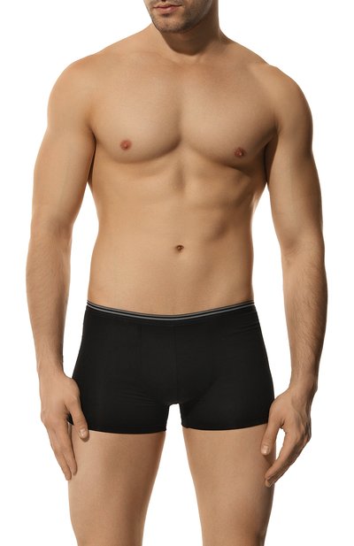 Для пошива облегающих черных боксеров использовали приятный телу трикотаж из отборного длинноволокнистого хлопка Sea Island. Гладкий эластичный материал хорошо тянется, отлично пропускает воздух и быстро отводит влагу, обеспечивая комфорт на протяжении всего дня. Мягкий пояс-резинка в тон украшен тканым логотипом бренда.