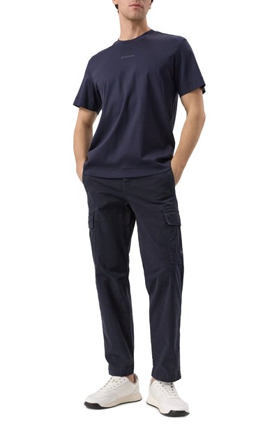 Темно-синяя футболка – комфортный вариант для прогулки в жаркий летний день. Для пошива модели использовали тонкое джерси из легк ого прочного льна. Материал отлично пропускает воздух, хорошо отводит влагу и быстро сохнет, создавая на коже ощущение приятной прохлады, а благодаря антибактериальным свойствам лубяных волокон ткань не впитывает запахи.