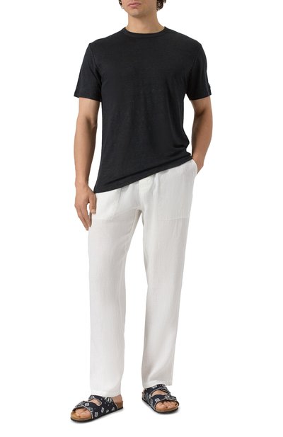 Темно-синяя футболка – комфортный вариант для прогулки в жаркий летний день. Для пошива модели использовали тонкое джерси из легкого прочного льна. Материал отлично пропускает воздух, хорошо отводит влагу и быстро сохнет, создавая на коже ощущение приятной прохлады, а благодаря антибактериальным свойствам лубяных волокон ткань не впитывает запахи.