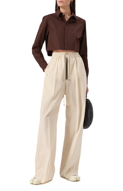 Белоснежные брюки с двумя боковыми карманами не только эффектно выглядят, но и экологичны: прочный тонкий креп состоит из сертифицированного переработанного полиэстера. Мягкая ткань полностью покрыта прозрачными пайетками, сырье для которых также переработали. Наши стилисты предлагают носить свободную модель с парным платьем, туфлями на шпильке и небольшой сумкой.