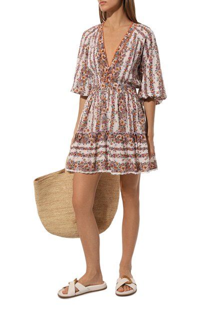 Короткое платье идеально подойдет для жары. Благодаря трапециевидному силуэту изделие почти не касается тела. Тонкий хлопок с нежным цветочным орнаментом Sweet Liberty легко пропускает воздух, сохраняя оптимальный микроклимат. Романтичные акценты модели добавляют рукава-фонарики с эластичными манжетами, контрастная тесьма вдоль линий кроя, высокая линия талии и расклешенный подол с оборками.