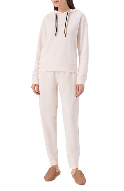 Кроме нейтральных серых свитшотов, джоггеров, халатов и знаковых для бренда пижамных комплектов в клетку и гусиную лапку, в ассортименте марки есть цветные непарные футболки, шорты и удлиненные платья.