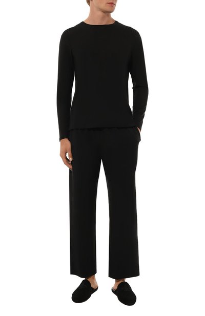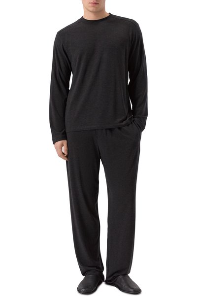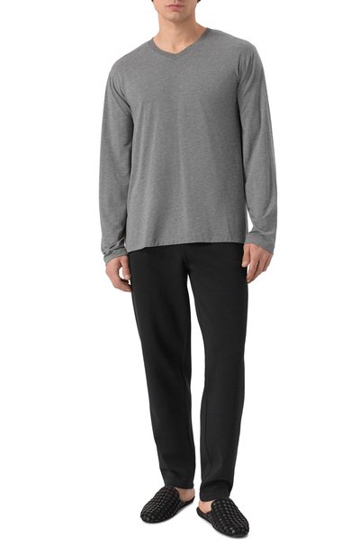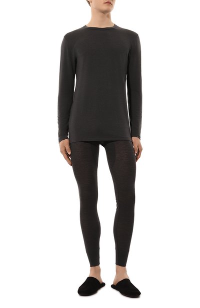 Темно-серый лонгслив сшили из тонкого трикотажа Basel — гладкого микромодала: сертифицированную целлюлозу бука для материала закупили у ответственных европейских поставщиков. Модель наши стилисты рекомендуют сочетать с парными брюками.