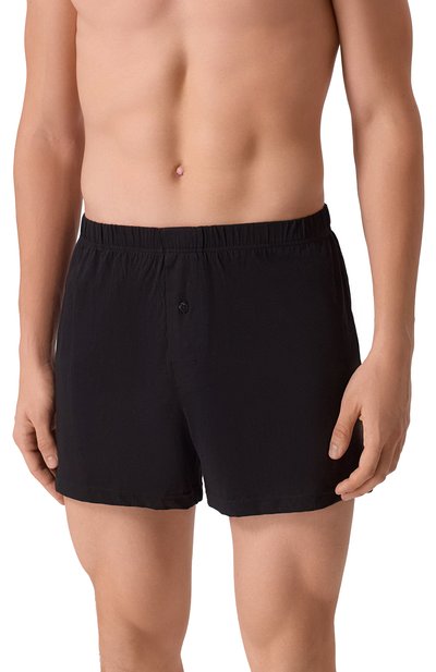 Черные боксеры с широким эластичным поясом выполнили из мягкого джерси. Для его изготовления использовали легкий длинноволокнистый хлопок пима, который нежнее обычного. Трусы из такого материала комфортно облегают фигуру и хорошо пропускают воздух.