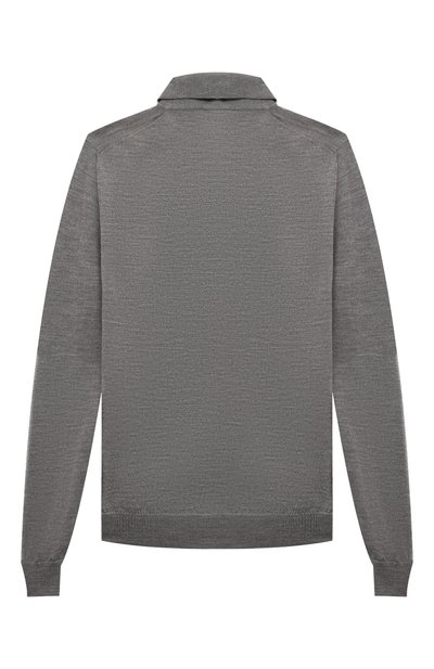 Лаконичное поло с длинными рукавами органично дополнит комплект с джинсами или сможет заменить рубашку в школьном образе. Модель связали из тонкой шерстяной пряжи.
