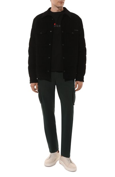 Черная футболка с круглым вырезом дополнена контрастным нагрудным карманом с ярким абстрактным принтом и логотипом бренда. Модель прямого кроя, не сковывающего движения, сшита вручную из гладкого дышащего джерси на основе отборного длинноволокнистого хлопка. Предлагаем создать образ с джинсами в тон и белыми кедами.