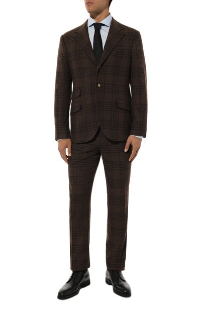 Для изготовления лаконичных черных дерби использовали эластичную зерненую кожу, которой не страшны царапины и заломы. Выразительная фактура материала снижает формальность модели и делает ее удачным компаньоном для повседневных образов. В произво дстве обуви применили технологию Blake: с помощью одного шва соединили подошву, стельку, подкладку и верх. Конструкция получилась прочной и гибкой.