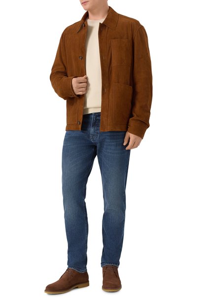 Темно-коричневые дезерты с круглым мысом выполнены из пластичной прочной замши с бархатистой фактурой. Сложный процесс создания каждой пары обуви состоит из множества операций, выполняющихся вручную с применением старинных ремесленных технологий. В результате получаются ботинки, которые безупречно садятся по ноге.