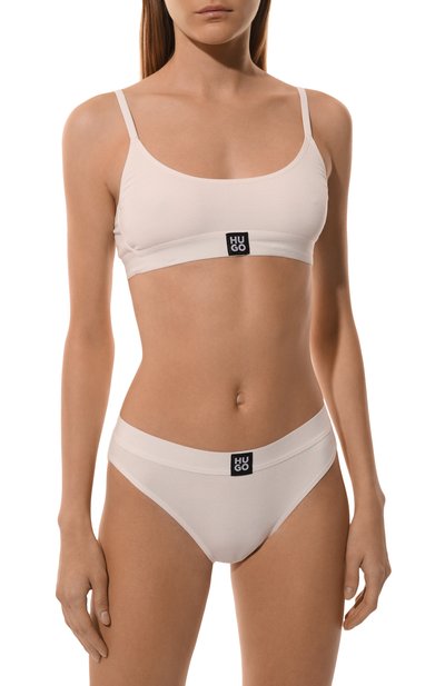 Трусы выполнили из хлопкового джерси стрейч. Белье дополнили широким эластичным поясом, декорированным повторяющимся черным логотипом бренда. В комплекте — два таких же изделия.