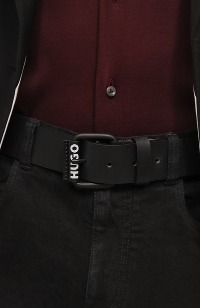 Края этого черного ремня окрасили в ярко-синий, сделав аксессуар менее формальным. Для изготовления модели классической ширины использовали прочную матовую кожу, на которой долго не появятся заломы и царапины. Изделие с тренчиком из такого же материала застегивается крупной пряжкой в тон, декорированной небольшим рельефным логотипом.