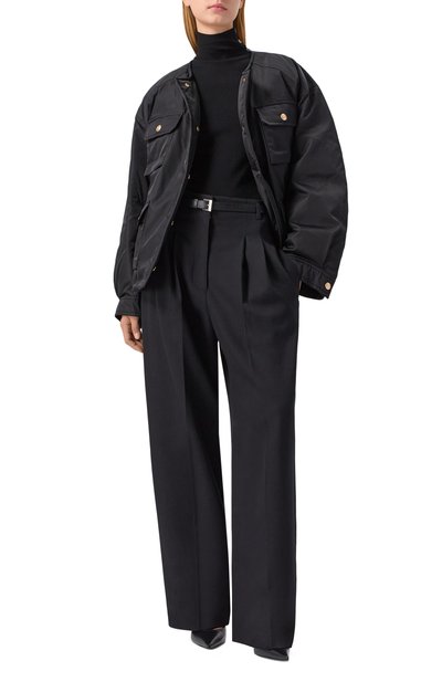 Черные брюки в исполнении Доменико Дольче и Стефано Габбаны органично дополнят образ любого уровня сложности. Для пошива приятной на ощупь лаконичной модели использовали мягкую шерстяную ткань, не препятствующую циркуляции воздуха. Изделие с отглаженными стрелками визуально вытягивает силуэт и не ограничивает движения за счет прямого кроя.