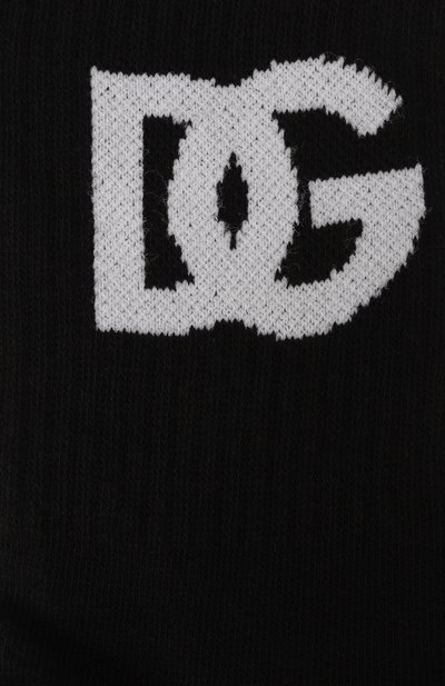 Для создания черных носков с формованными пяткой и мысом использовали тонкую пряжу, в которой нежный дышащий хлопок соединили с прочным нейлоном и эластаном. Высокий паголенок связали резинкой, поэтому он мягко облегает щиколотку. Белую полосу на манжете поддержали эмблемой DG в тон.