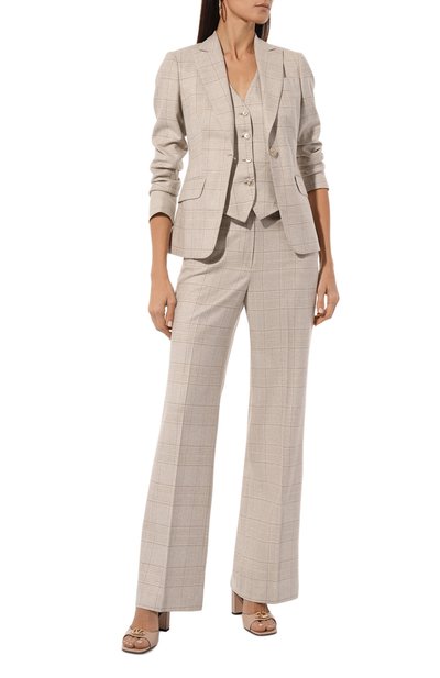 Свободные вельветовые брюки со стрелками и четырьмя карманами будут уместны и в офисе с нестрогим дресс-кодом, и в ресторане. Заднюю шлевку укороченной модели с завышенной посадкой декорировали цепочками мониль.