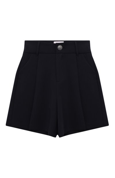 Темно-синие шорты с защипами спереди выполнили из мягкого плотного материала на основе полиэстера и вискозы. Текстиль почти не мнется, долго сохраняя опрятный вид, а чтобы обеспечить более удобную посадку по фигуре, в состав включили эластан. Модель дополнили двумя парами карманов.
