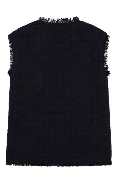 Для пошива темно-синего жилета с V-образным вырезом использовали мягкий эластичный текстиль, не препятствующий циркуляции воздуха. Модель не мнется и слегка тянется, не ограничивая движения, поэтому в ней будет комфортно весь день. Изделие, застегивающееся тремя металлическим пуговицами с рельефной геральдической эмблемой, подойдет и для школы, и для торжественного мероприятия.