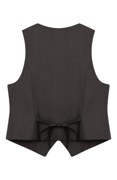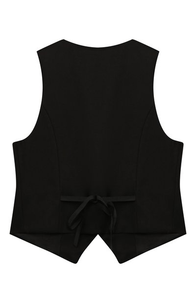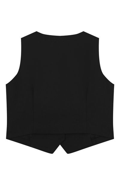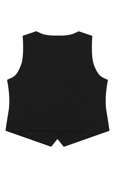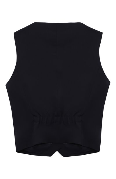 Темно-синий жилет с V-образным вырезом и фигурным низом идеально подойдет для создания школьного образа или поддержит брючный костюм для торжественного мероприятия. Для изготовления модели использовали мягкий эластичный текстиль, который не вытянется со временем. Изделие застегивается металлическими пуговицами с рельефной геральдической эмблемой.