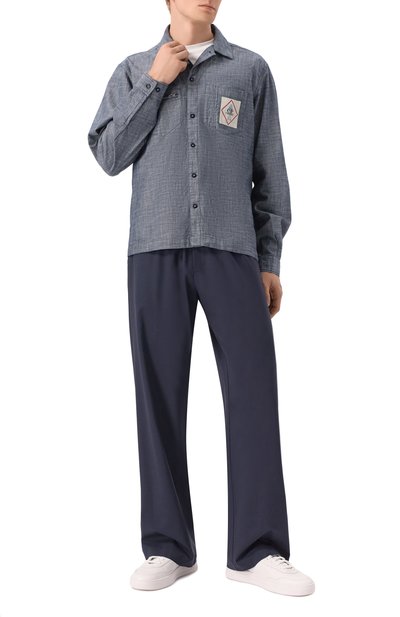 Джинсовая рубашка с эффектом делаве гармонично впишется в повседневный образ с брюками и футболкой почти любых цветов. Для пошива модели с двумя нагрудными накладными карманами использовали хлопок.