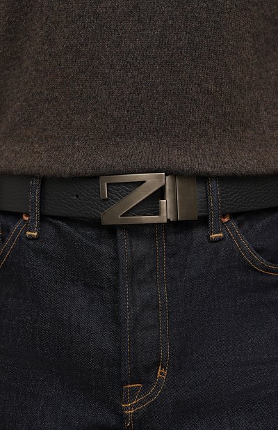 Черный узкий ремень изготовили из мягкой прочной кожи с мелким рельефным тиснением. Аксессуар регулируется прямоугольной брендированной пряжкой с гильошированным узором и серебристым гальваническим покрытием.