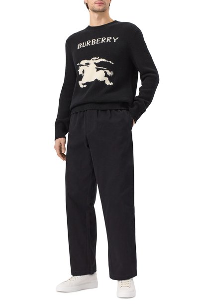 Свитер оттенка хаки украсили крупным логотипом марки, выполненным в технике интарсии. Модель связали из полушерстяной пряжи с добавлением нейлона, предупреждающего пилингование. Изделие подружится и с шортами, и со строгими брюками, и с джинсами.