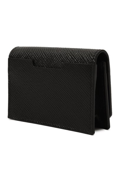 Черный футляр с четырьмя слотами для кредитных карт и разделительным карманом выполнили из прочной кожи с мелким тиснением. Чтобы подчеркнуть фактуру, материал тщательно отполировали до глянцевого блеска. Картхолдер из коллекции Mini Franzi украсили спереди серебристым логотипом бренда.