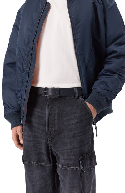 Ремень с квадратной пряжкой в тон выполнили из гладкой итальянской кожи. Шлевку украсили тисненым логотипом бренда. Аксессуар подойдет как для джинсов, так и для брюк из офисного гардероба.