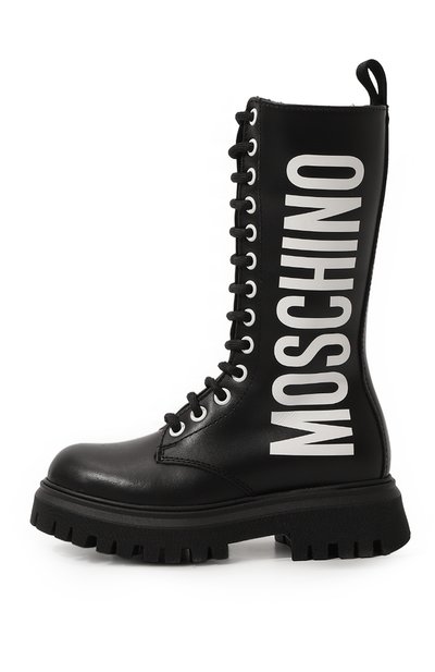 Принадлежность черных ботинок марке обозначили красной текстильной петлей с логотипом, которой выделили задник. Для пошива ботинок с круглым мысом использовали гладкую плотную кожу с шелковистым блеском. Модель дополнили массивной подошвой с крупным протектором.